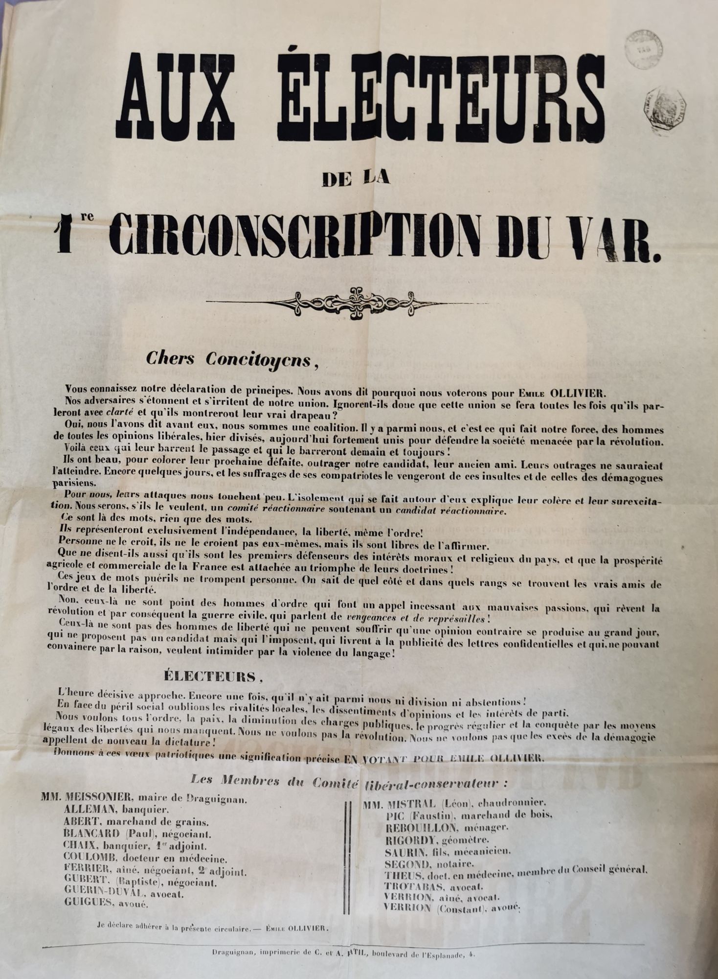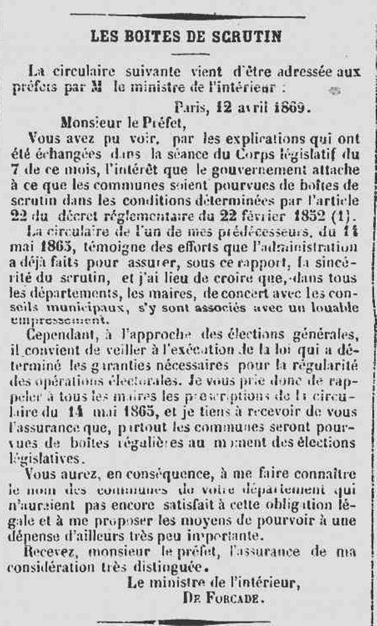 Corpus de documents émanant majoritairement de la Préfecture (série M) au sujet des élections pour se rendre compte de l'évolution des scrutins.