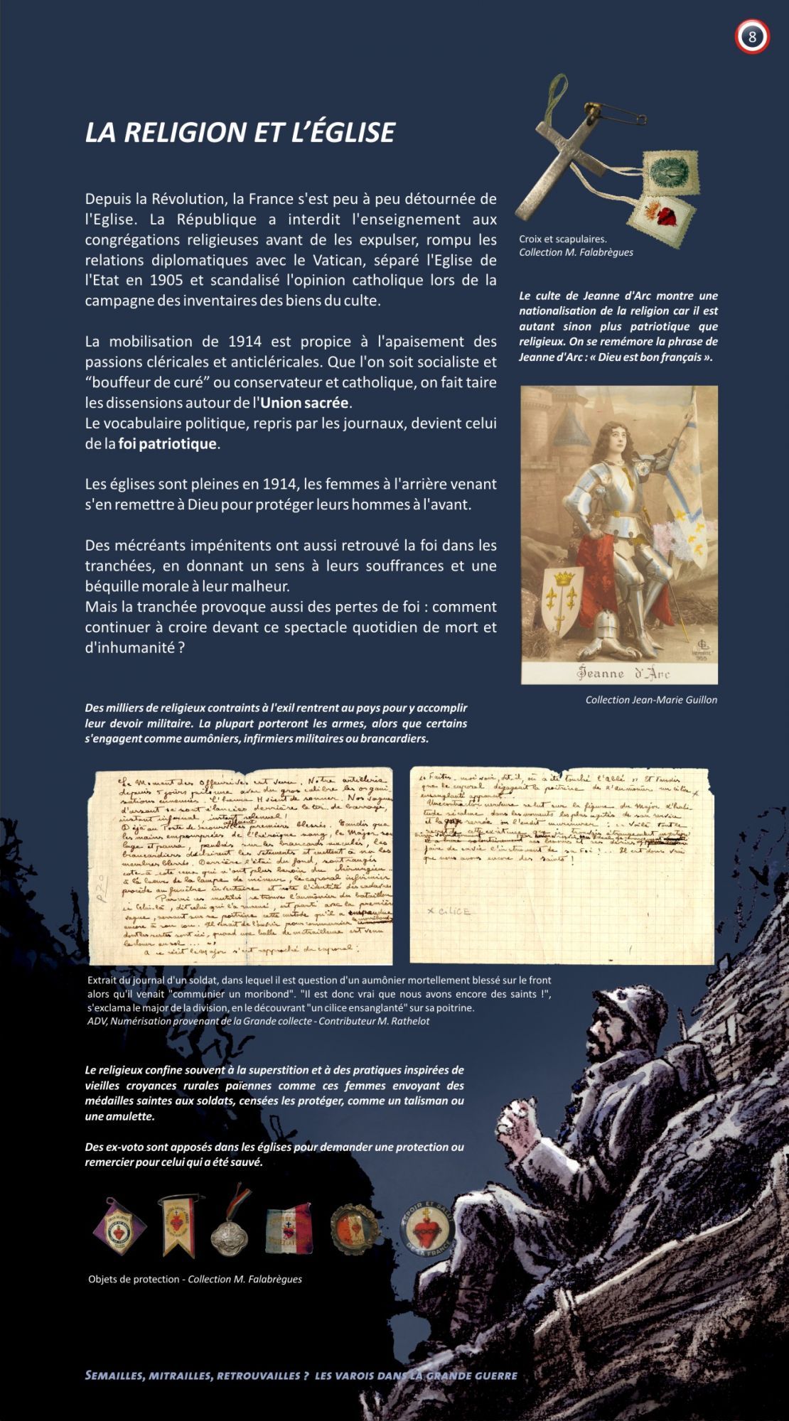 La Grande Guerre a marqué notre département dans ses mentalités et son mode de vie. Cette exposition, qui s’adresse à un large public, avec des actions spécifiques en direction des scolaires, a pour ambition de proposer des clefs de lecture pour tenter de mieux comprendre les bouleversements du XXe siècle, et notamment les évolutions sociales et sociétales.