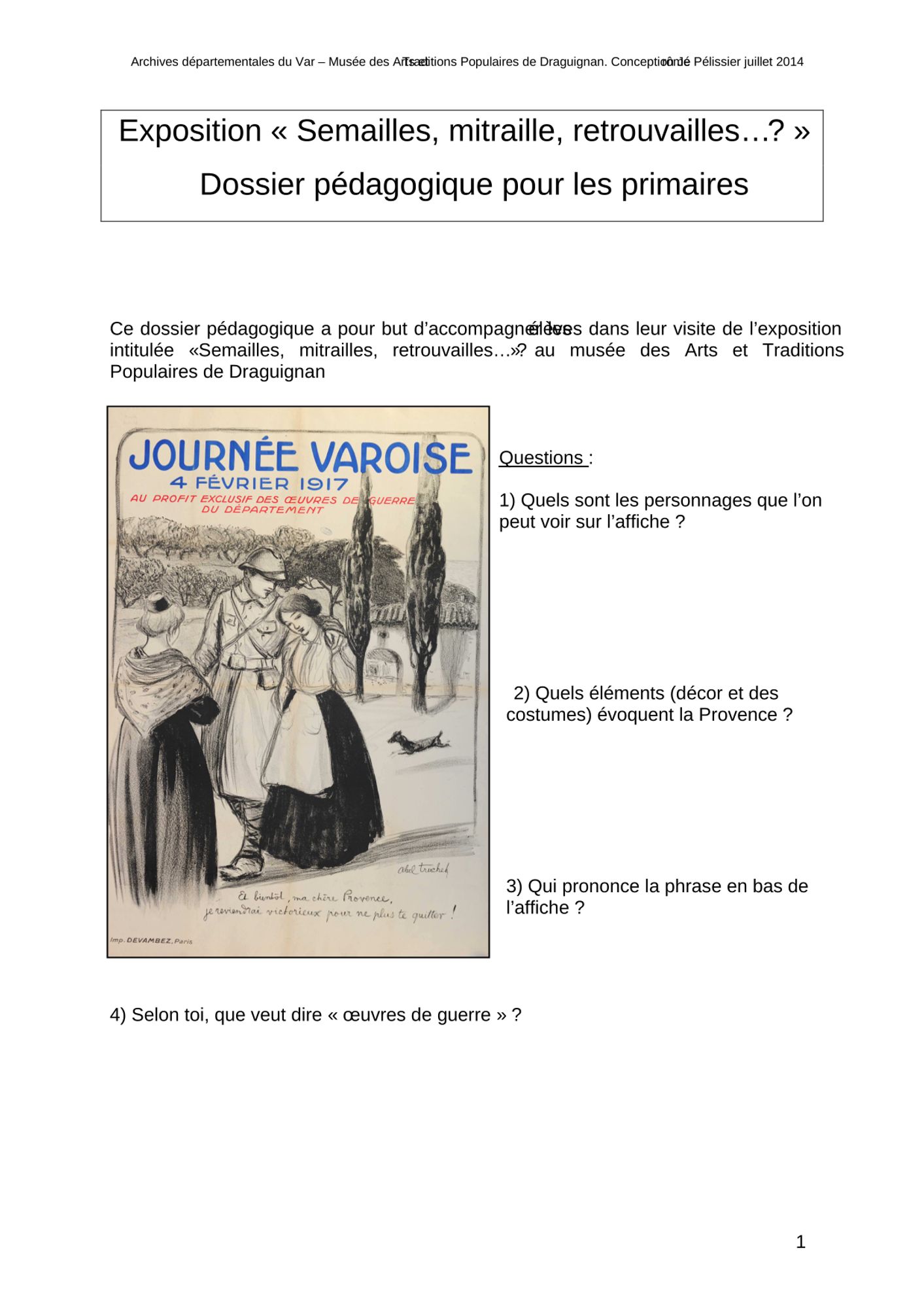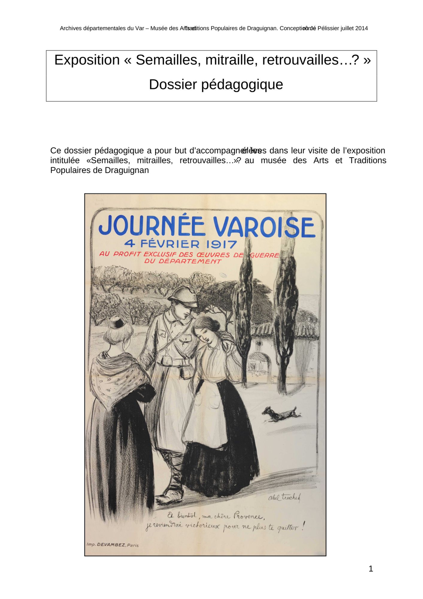 Dossier pédagogique de l'exposition : "Semailles, mitraille, retrouvailles...?"
