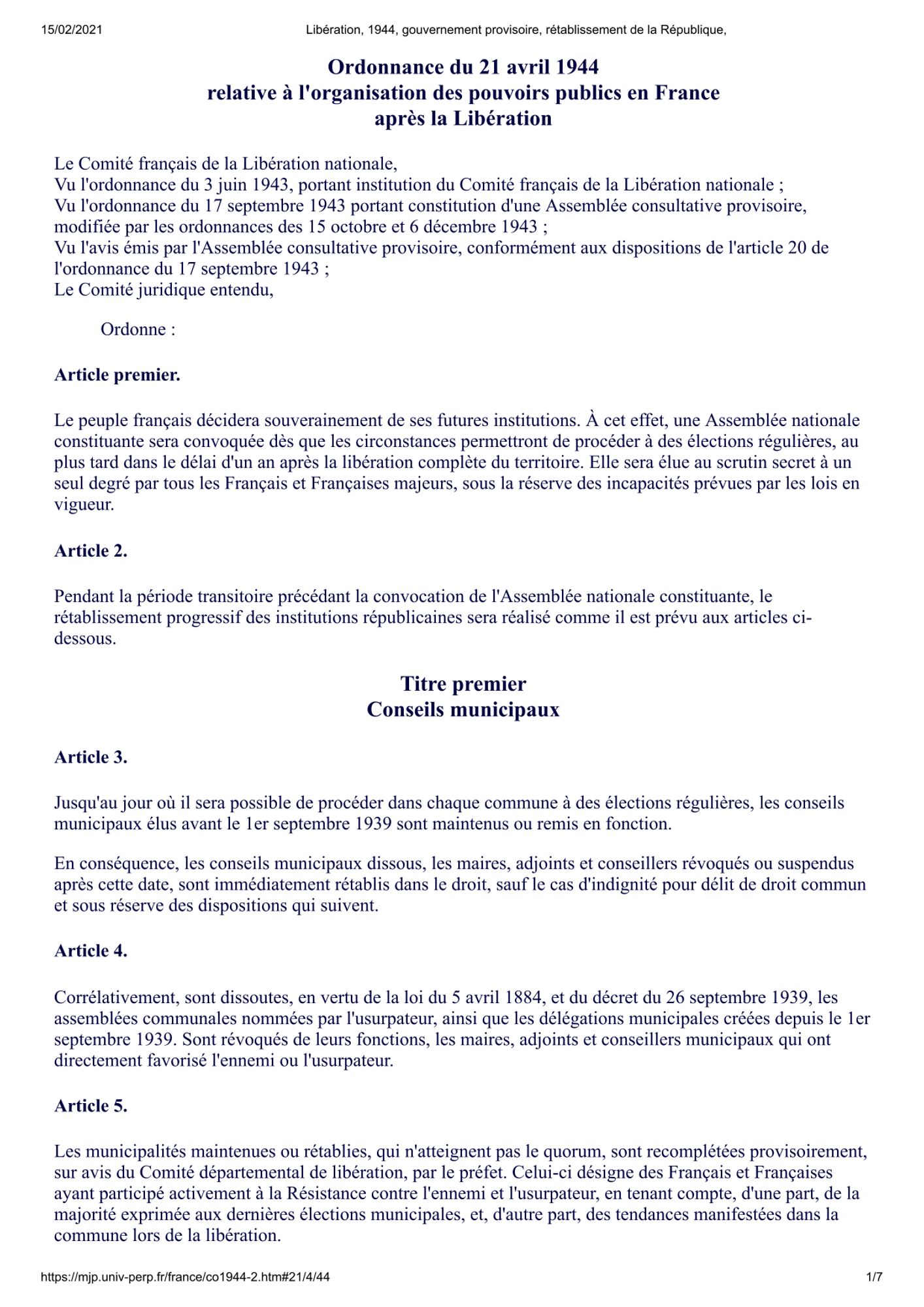 5 - Les élections municipales des 29 avril et 13 mai 1945 dans le Var :
