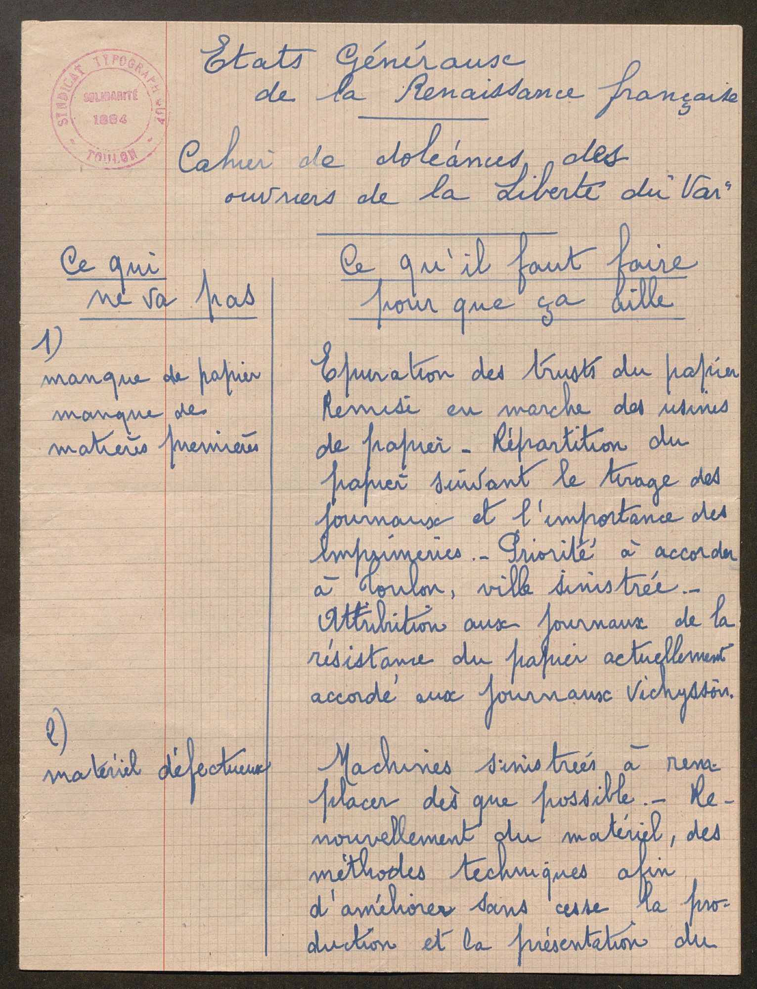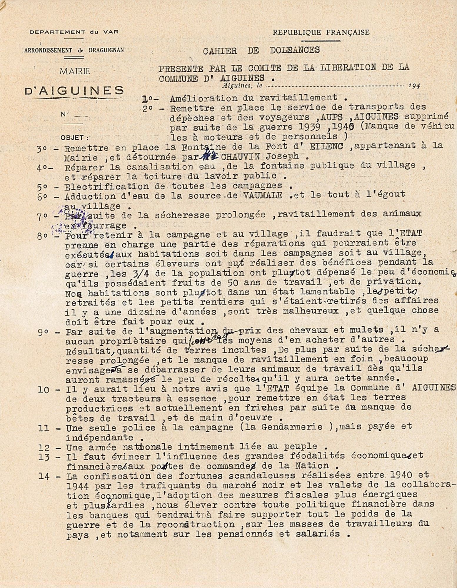 Cahiers de doléances 1945