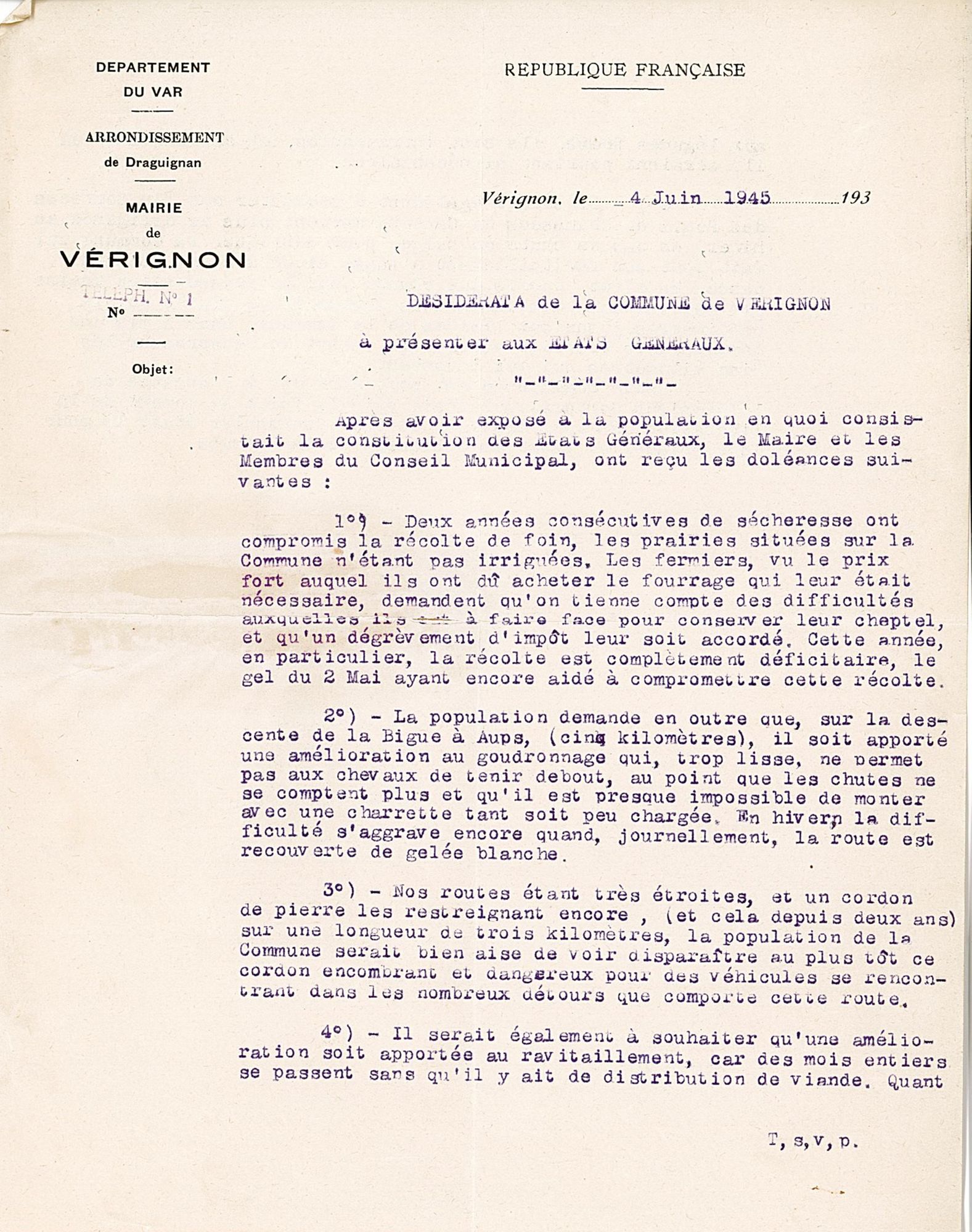 La deuxième revendication relève du même horizon d’urgence. C’est le rétablissement rapide des communications routières et ferroviaires. Les propositions communales sont souvent très précises, indiquant les ponts à reconstruire, les liaisons à assurer, les fréquences souhaitées, en particulier avec Toulon.