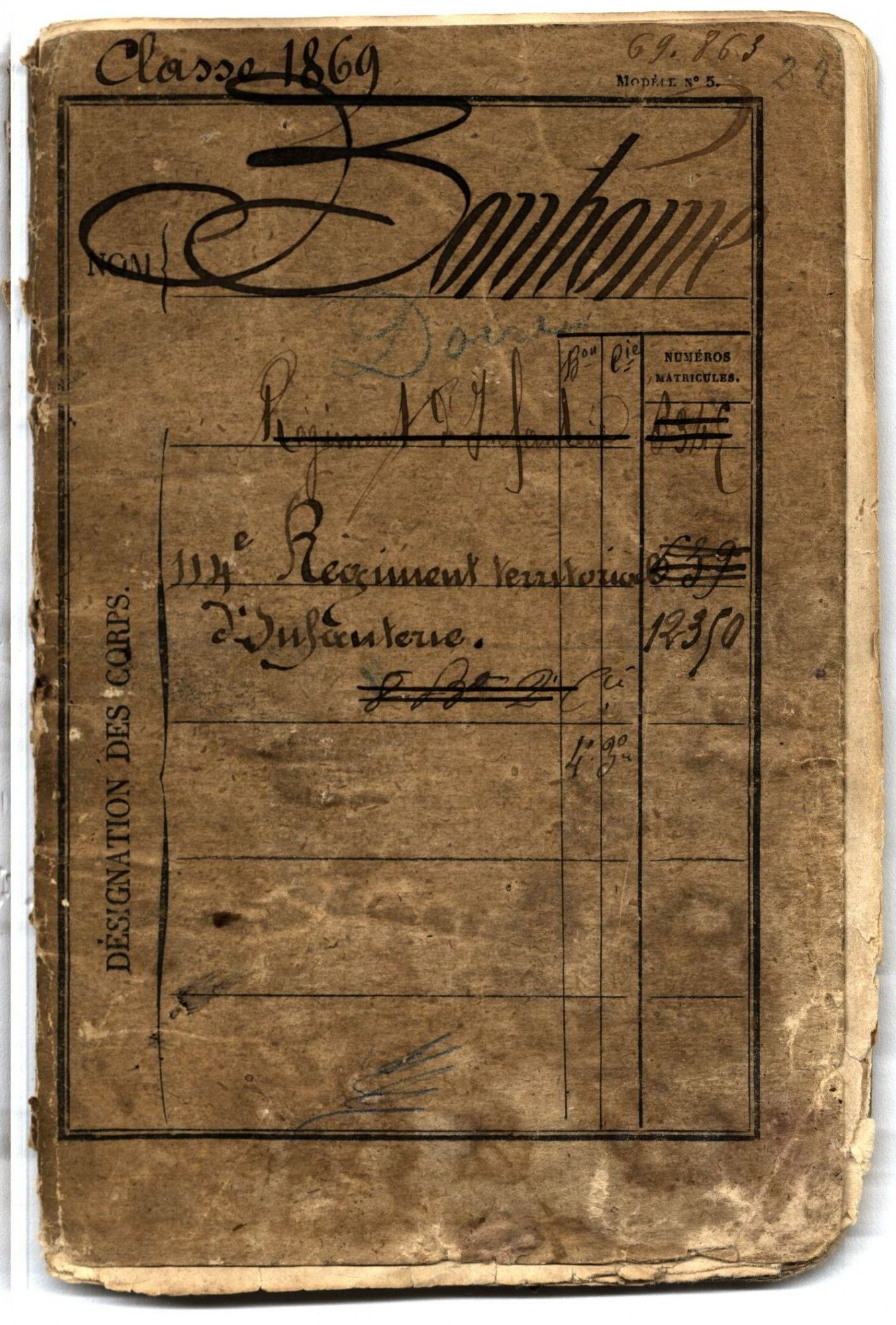 Fonds d'archives de Jean Bonhomme du 114e régiment territorial d'infanterie, soldat de la guerre de 1870-1871