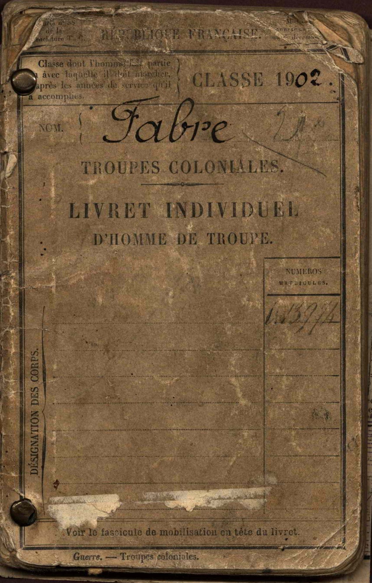 Livret militaire de Gustave Fabre