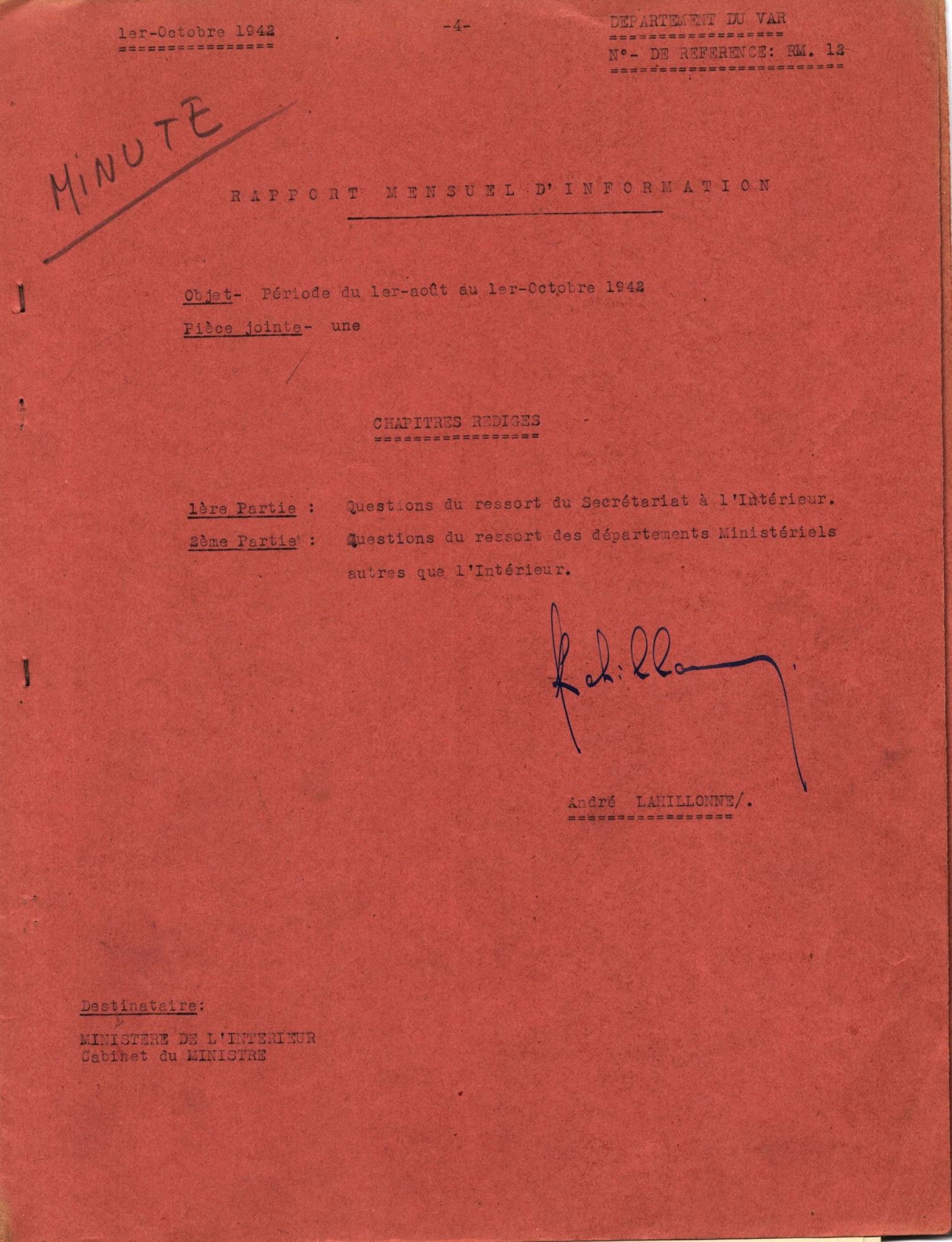 Rapport du préfet du Var au ministre de l'Intérieur sur la situation morale du département du Var en août et septembre 1942 Rapport du préfet du Var au ministre de l'Intérieur sur la situation morale du département du Var en août et septembre 1942 45