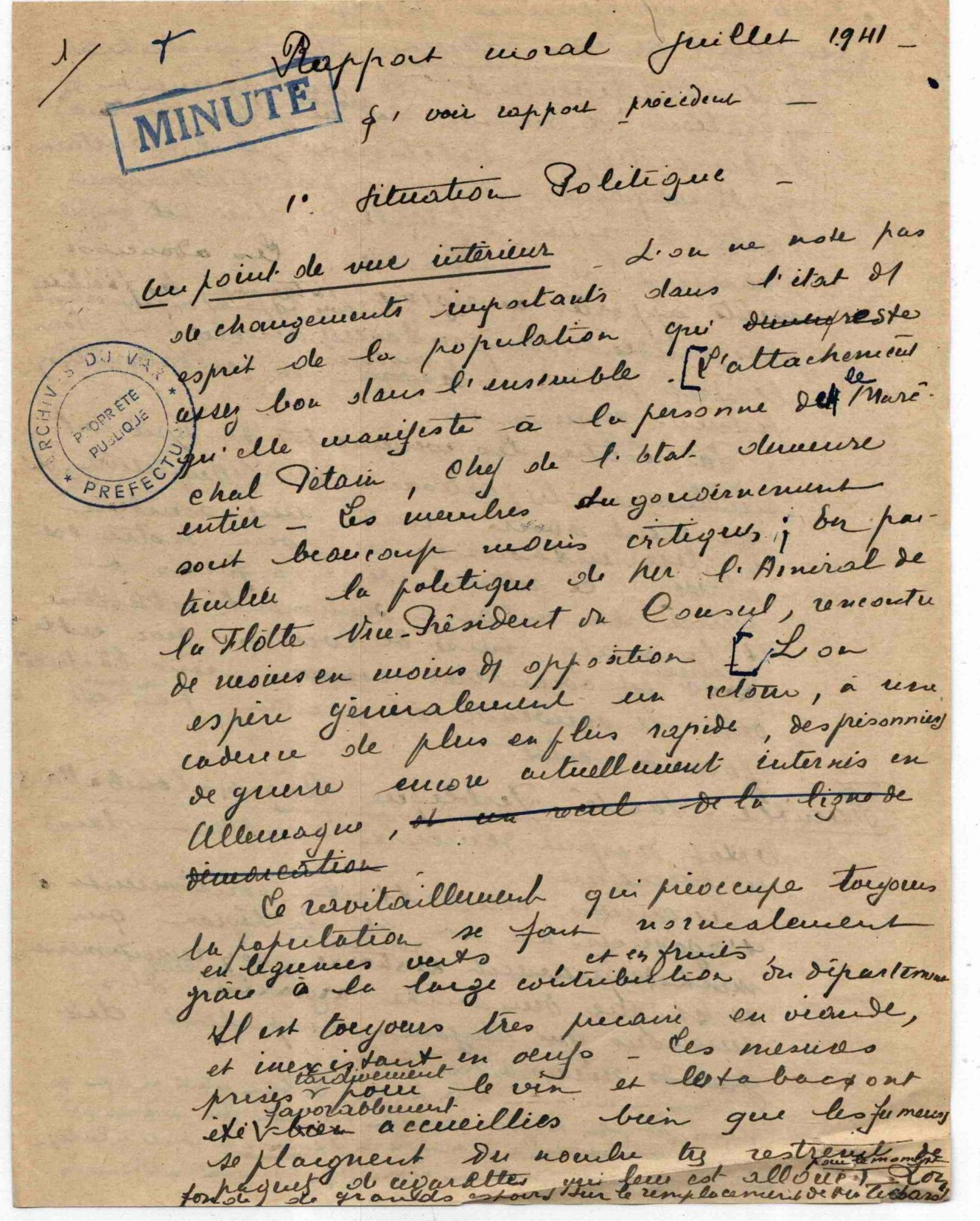 Rapport du préfet du Var au ministre de l'Intérieur sur la situation morale du département du Var en juillet 1941 Rapport du préfet du Var au ministre de l'Intérieur sur la situation morale du département du Var en juillet 1941 28