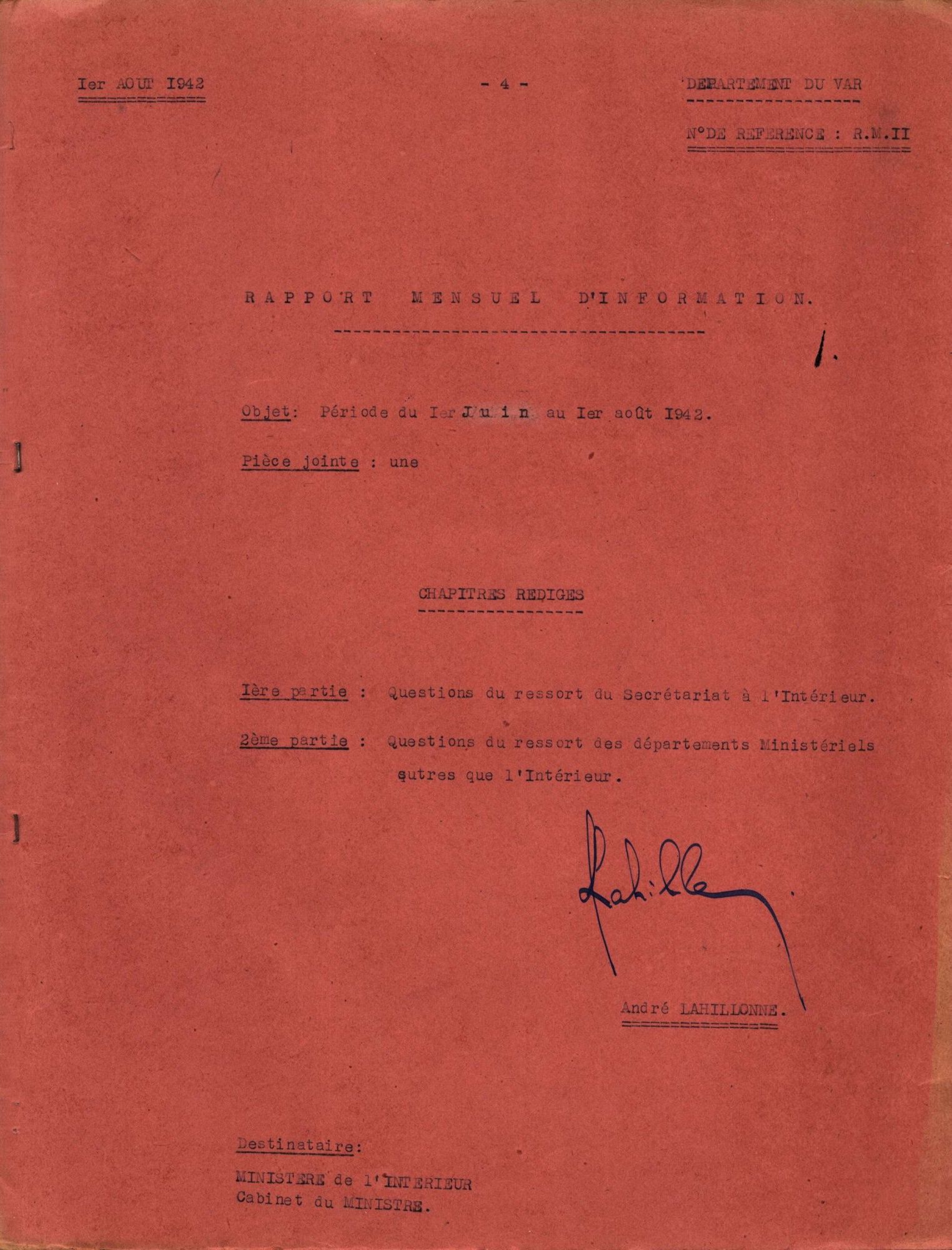 Rapport du préfet du Var au ministre de l'Intérieur sur la situation morale du département du Var en juin et juillet 1942 Rapport du préfet du Var au ministre de l'Intérieur sur la situation morale du département du Var en juin et juillet 1942 48