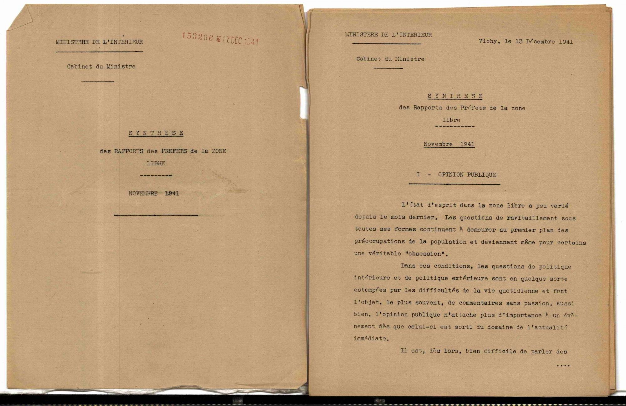 Synthèse des rapports mensuels des préfets de la zone libre au ministre de l'Intérieur (novembre 1941) Synthèse des rapports mensuels des préfets de la zone libre au ministre de l'Intérieur (novembre 1941) 12