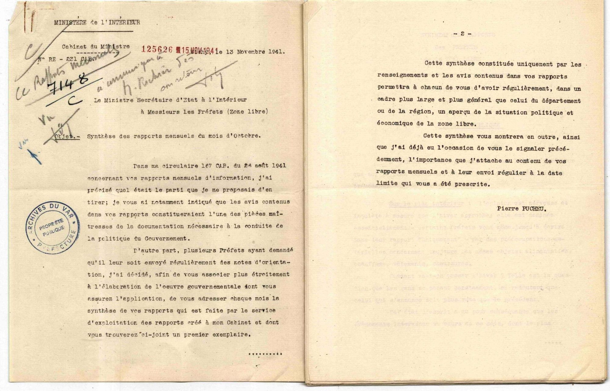 Synthèse des rapports mensuels des préfets de la zone libre au ministre de l'Intérieur (octobre 1941) Synthèse des rapports mensuels des préfets de la zone libre au ministre de l'Intérieur (octobre 1941) 11