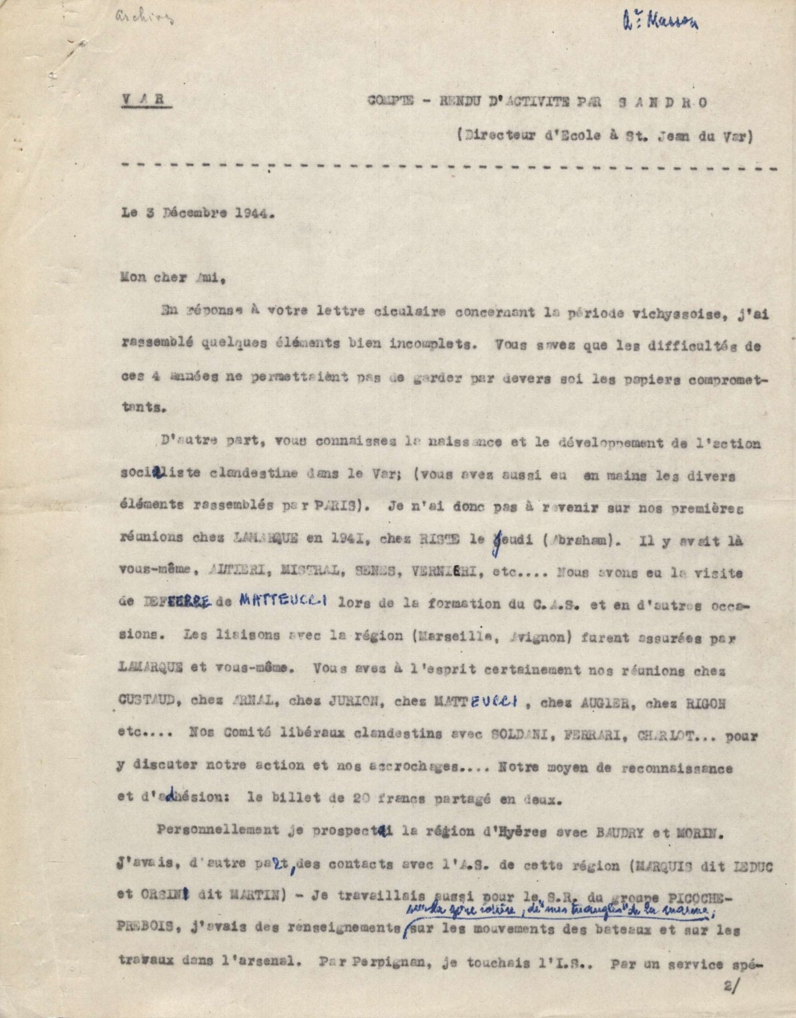 Témoignage du résistant Sandro, recueilli par Victor Masson en 1944 Témoignage du résistant Sandro, recueilli par Victor Masson en 1944 13