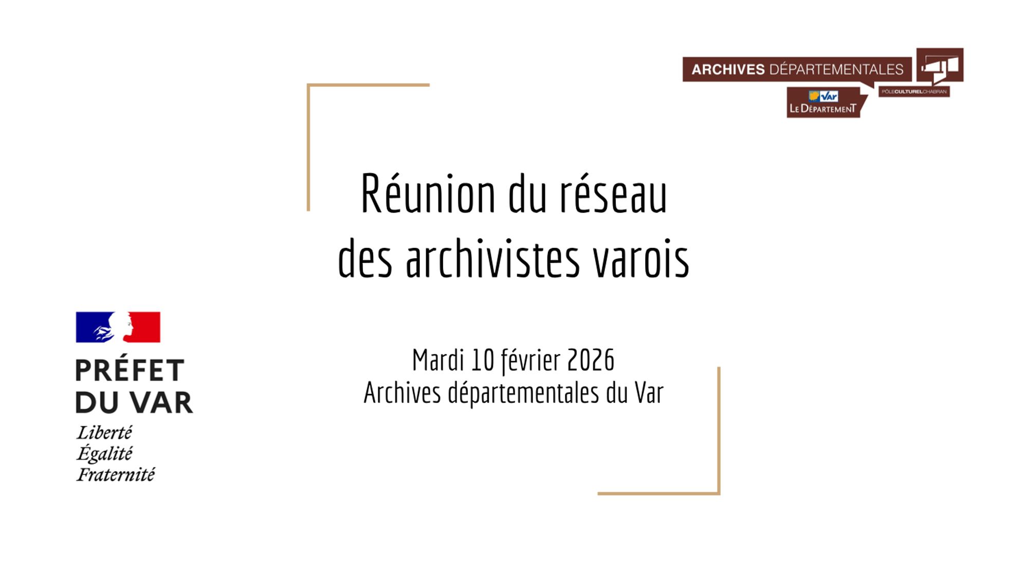 La réunion annuelle des archivistes communaux et intercommunaux s'est tenue, le 10 février 2026, aux Archives départementales du Var à Draguignan. Comme d'habitude, la soixantaine de participants a pu échanger sur des sujets d'actualité tels que le récolement post-électoral des archives, mais aussi découvrir la mise en place d'un service commun archives papier et électroniques sur le territoire de la communauté de communes du Golfe de Saint-Tropez avec le projet de mutualisation d'un système d'archivage électronique.
