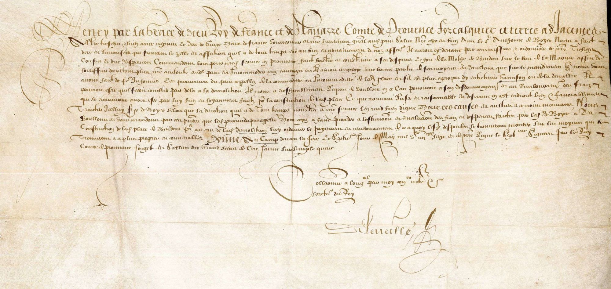 Cet écrit est le témoignage du mandement d'Henri IV au duc de Guise. Il est relatif au fort de la Motte nouvellement érigé. Par ce mandement, Henri IV répond à la demande de remboursement des frais avancés pour la construction du fort, et demande à ce qu'une évaluation soit faite pour sa démolition.