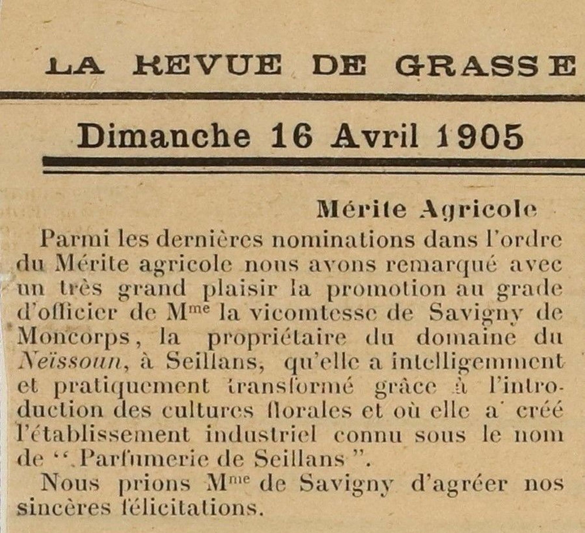 Le village de Seillans a pu s’enorgueillir pendant de nombreuses années de la présence sur son territoire d’une parfumerie créée à la fin du XIXe siècle par la comtesse de Savigny (1848-1932).