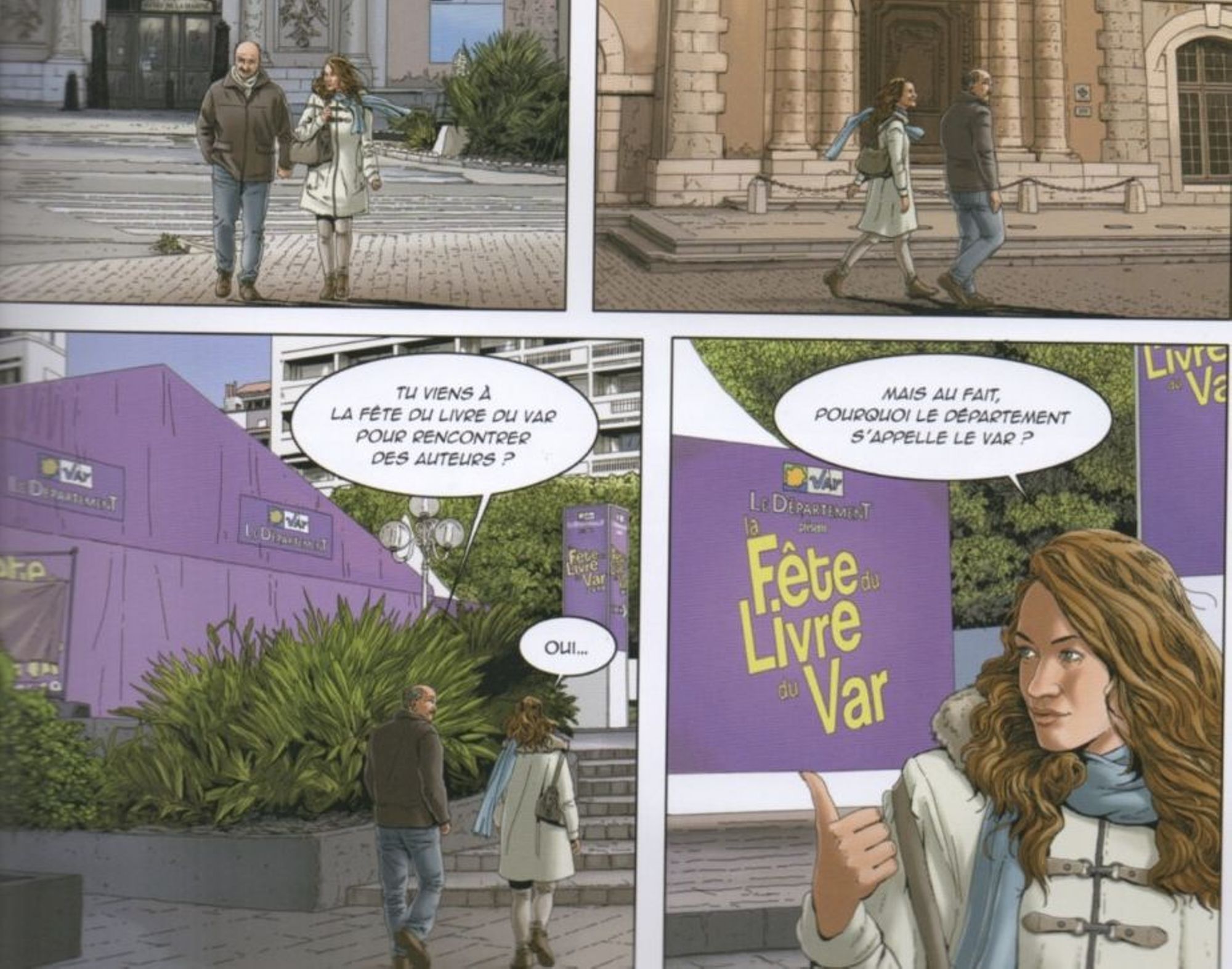 L’objectif de cette présentation est d’exposer les étapes qui ont conduit à l’élaboration de l’album Le Var. Une terre d’histoire entre Verdon et Méditerranée. L’ouvrage collectif obéit à la feuille de route définie par l’éditeur (nombre de planches, délais de réalisation). Les tâches sont bien distribuées entre le scénariste et le dessinateur, mais la réalisation n’est pas strictement cloisonnée. Les échanges entre les auteurs sont réguliers, sinon constants, pour la mise en place de l’énigme ou intrigue, pour le découpage général (synopsis) et la succession des planches.
