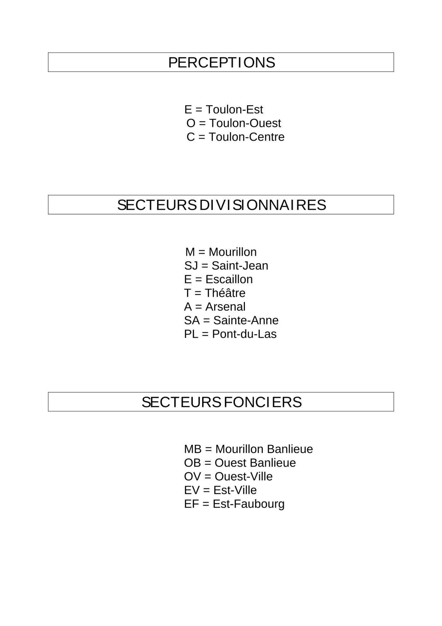 Le document ci-dessous vous permettra de trouver le secteur dont dépend la rue de Toulon que vous cherchez.
